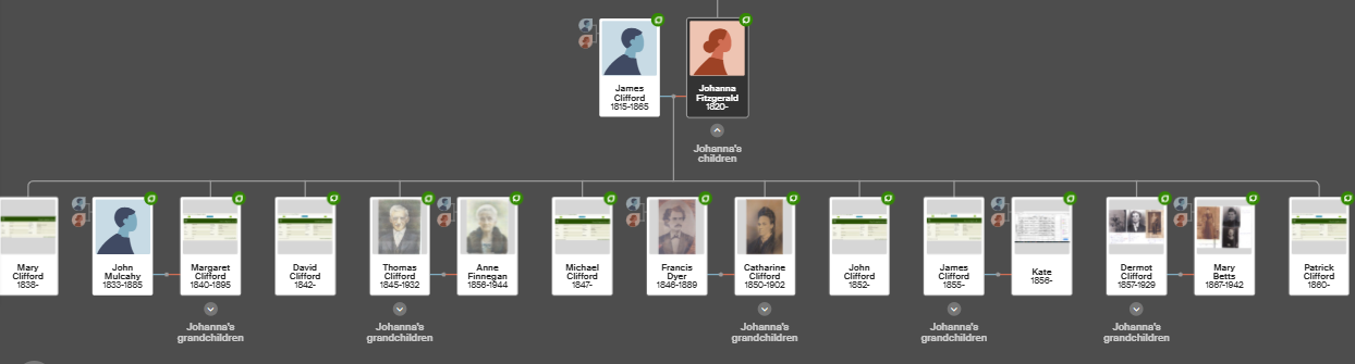 The children of James Clifford & Johanna Fitzgerald were all born in Mahoonagh Parish, Co. Limerick: