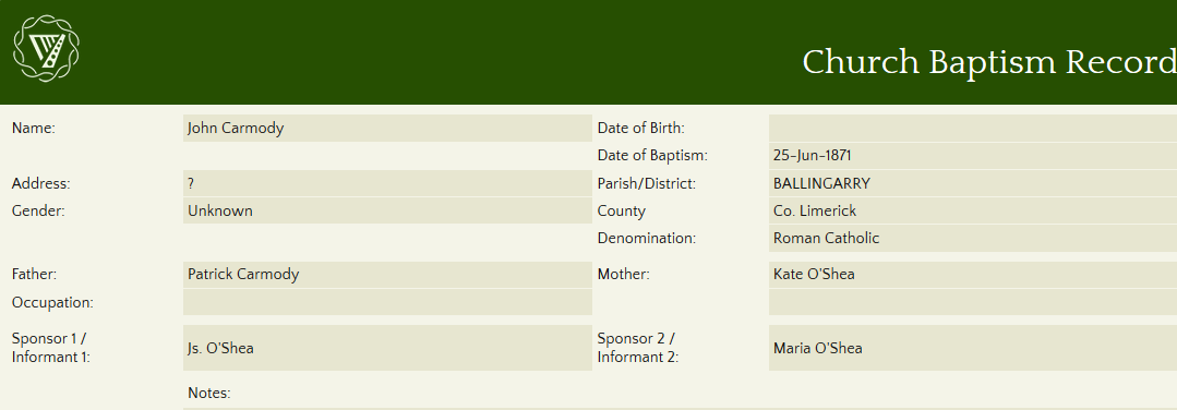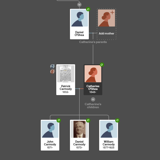 I would be happy to hear from anyone who might help me with this O’Shea/Carmody family – please email infosheacollins@gmail.com