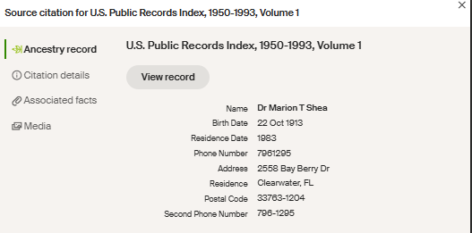 Marion T. Shea died at home in Clearwater on January 20, 1991. She was 77. She was laid to rest in Calvary Catholic Cemetery, far from the fields of Limerick where her great-grandparents once stood, but not far at all from their spirit.