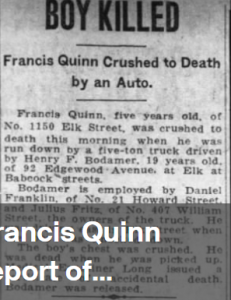 1922 – 5 year old Francis was tragically killed by a truck.